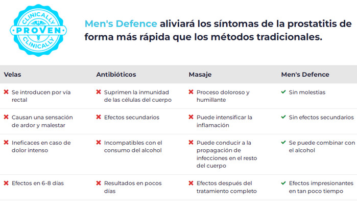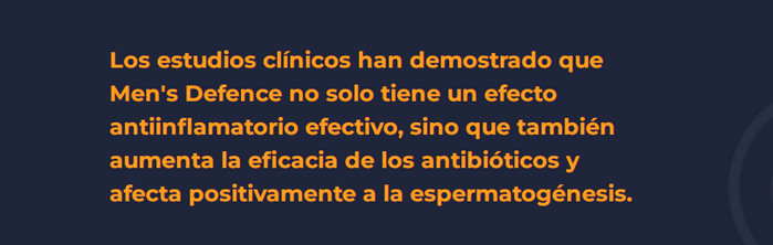 Hoy en día, la medicina ofrece muchas herramientas que prometen hacer frente a la prostatitis. Sin embargo, en realidad, la mayoría de los medicamentos brindan solo un alivio temporal, y luego la enfermedad regresa nuevamente y arruina la vida de los pacientes y sus seres queridos. Men’s Defence contiene componentes e ingredientes naturales.