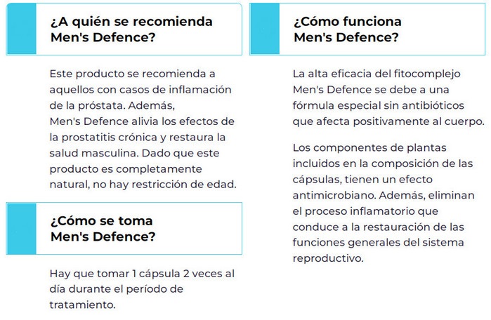 En pagina oficial, puede leer sobre que es Men’s Defence, para que sirve, cómo funciona y por qué beneficios la droga es mejor que los análogos en Guatemala, cómo usar de acuerdo con las instrucciones de uso, donde comprarlo, donde lo venden y cuál es el precio. Además, no te olvides de los foros, donde puedes leer testimonios, comentarios y opiniones sobre Men’s Defence.